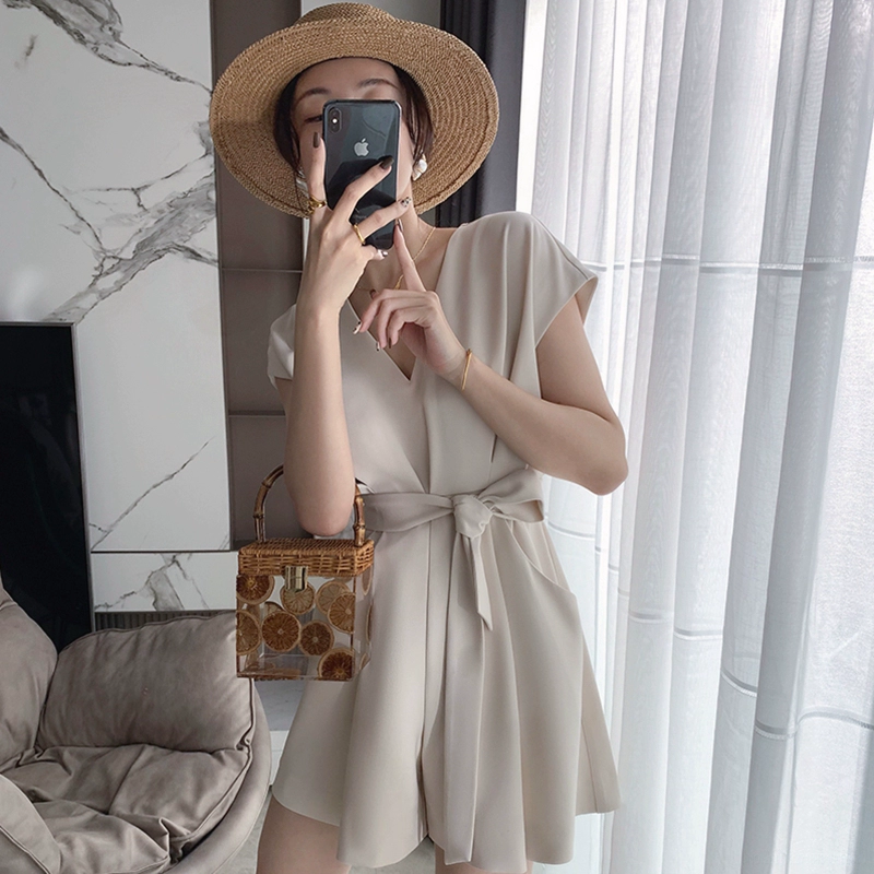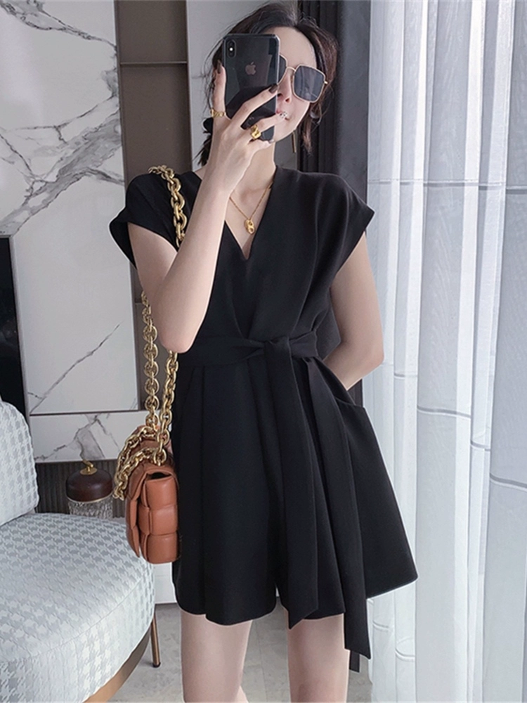 | nameOriginal | Retro style waist slim fit lace up jumpsuit short sleeves |