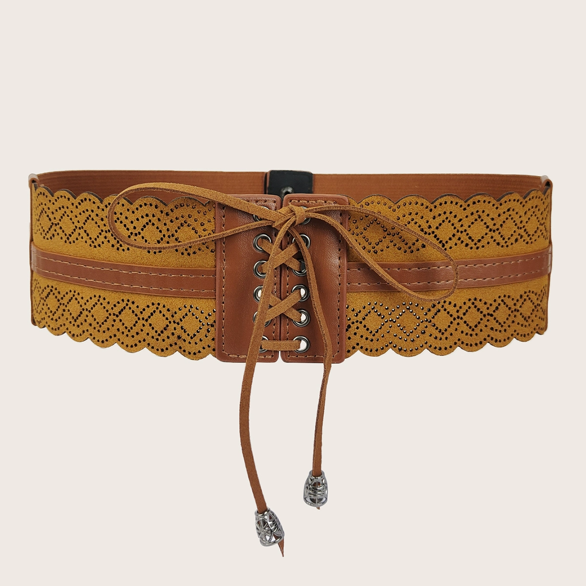 | nameOriginal | Retro suede women's woven elastic elastic strap girdle |