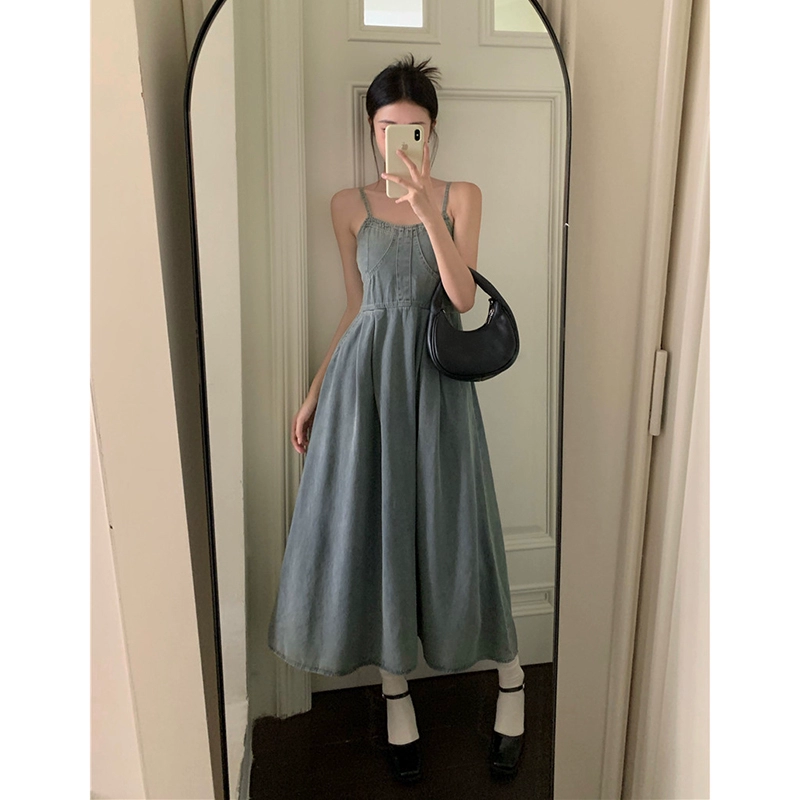 | nameOriginal | Retro summer fat mm suspender denim dress |
