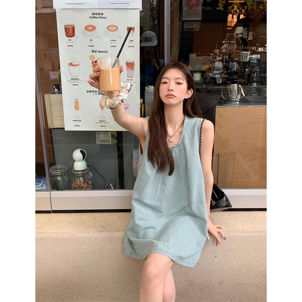 | nameOriginal | Retro summer simple loose slim denim vest skirt |