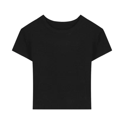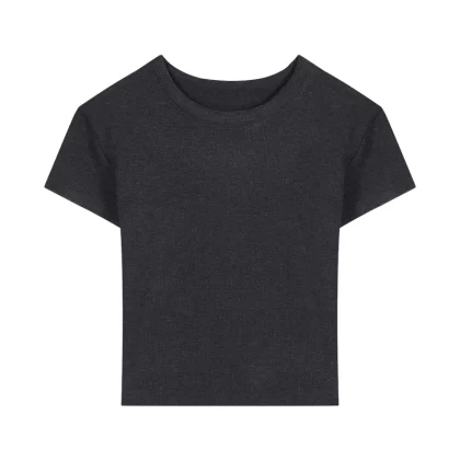 Retro Summer Waist Simple Round Neck Short Sleeve T-Shirt