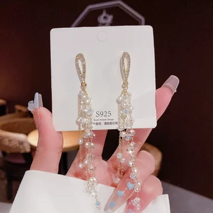 | nameOriginal | Retro tassel love 925 silver earrings European and American temperament long style stylish simple internet celebrity same style earrings |
