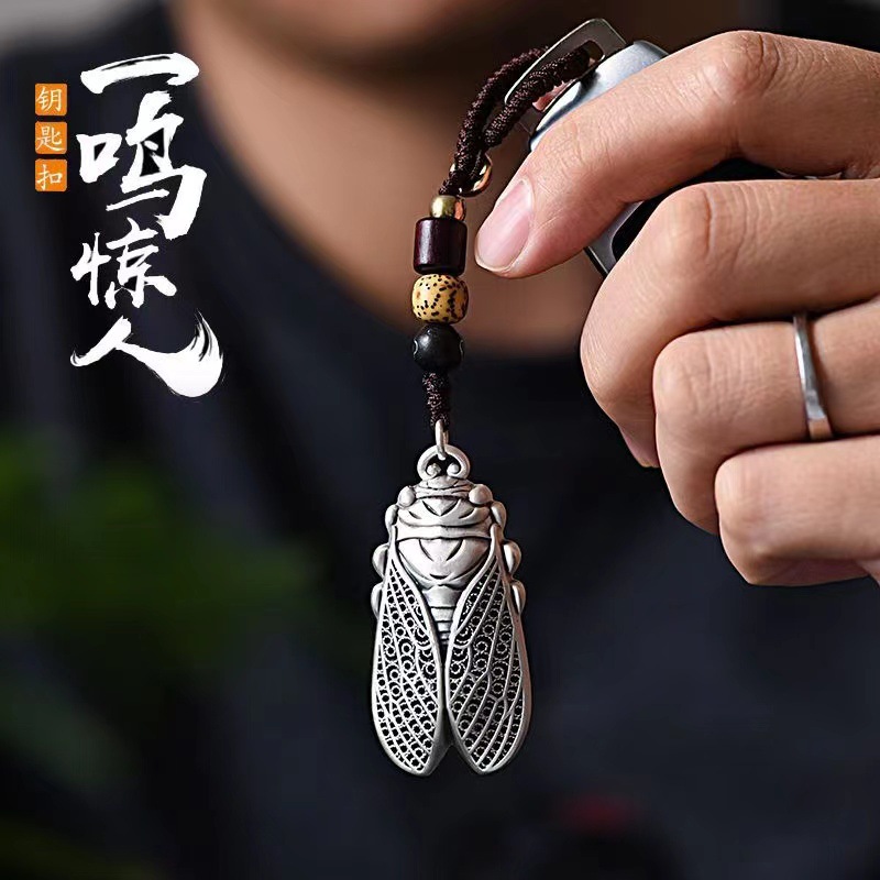 | nameOriginal | Retro Thai silver amazing golden cicada keychain knows Chinese style men's and women's car pendant accessories one-piece delivery |