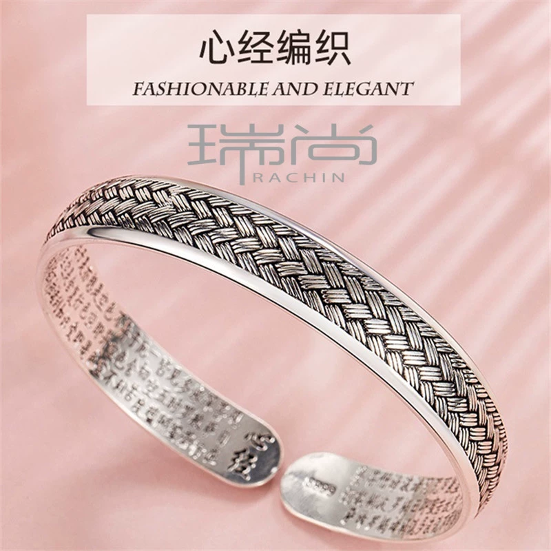 | nameOriginal | Retro Thai silver heart sutra bracelet for women with personalized design woven surface open bracelet trendy men's retro ethnic creative hand jewelry |