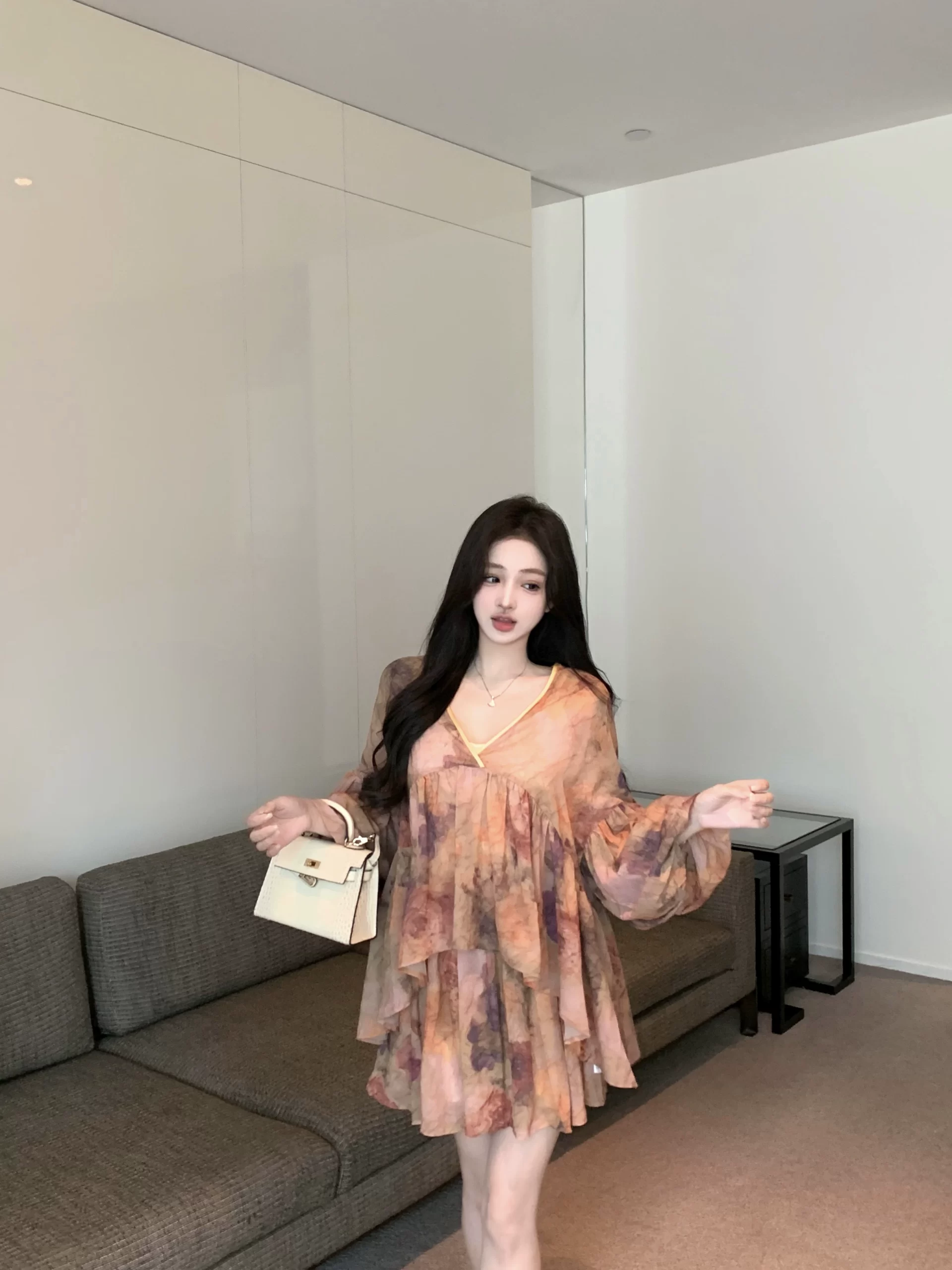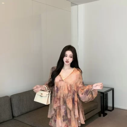 Retro tie-dye high-waisted casual two-piece long-sleeved shirt