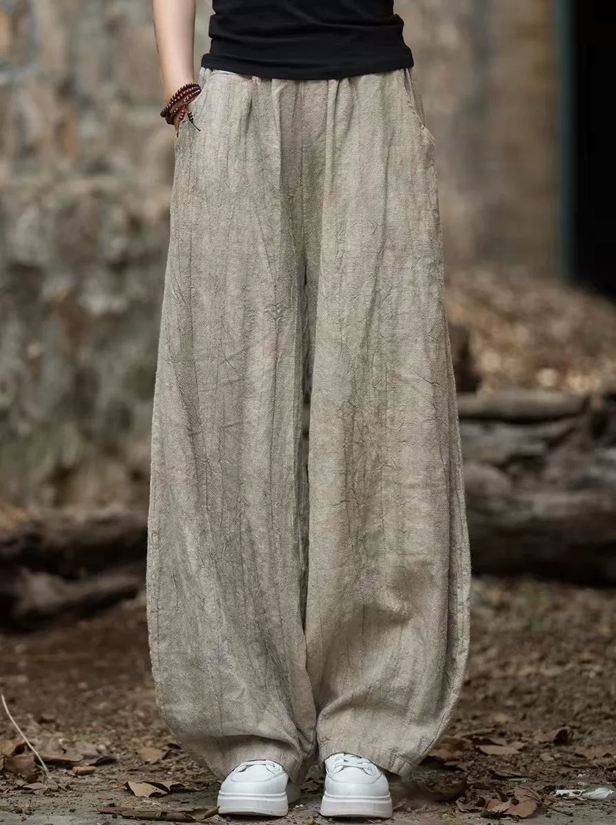 | nameOriginal | Retro tie-dye plus size ramie niche high waist pants |