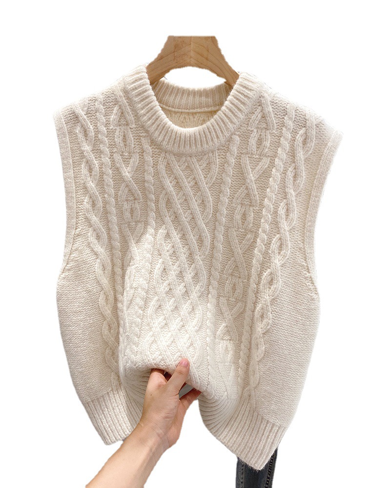 Retro twist sleeveless sweater women’s autumn and winter Korean style thickened loose stacked knitted vest outer round neck vest