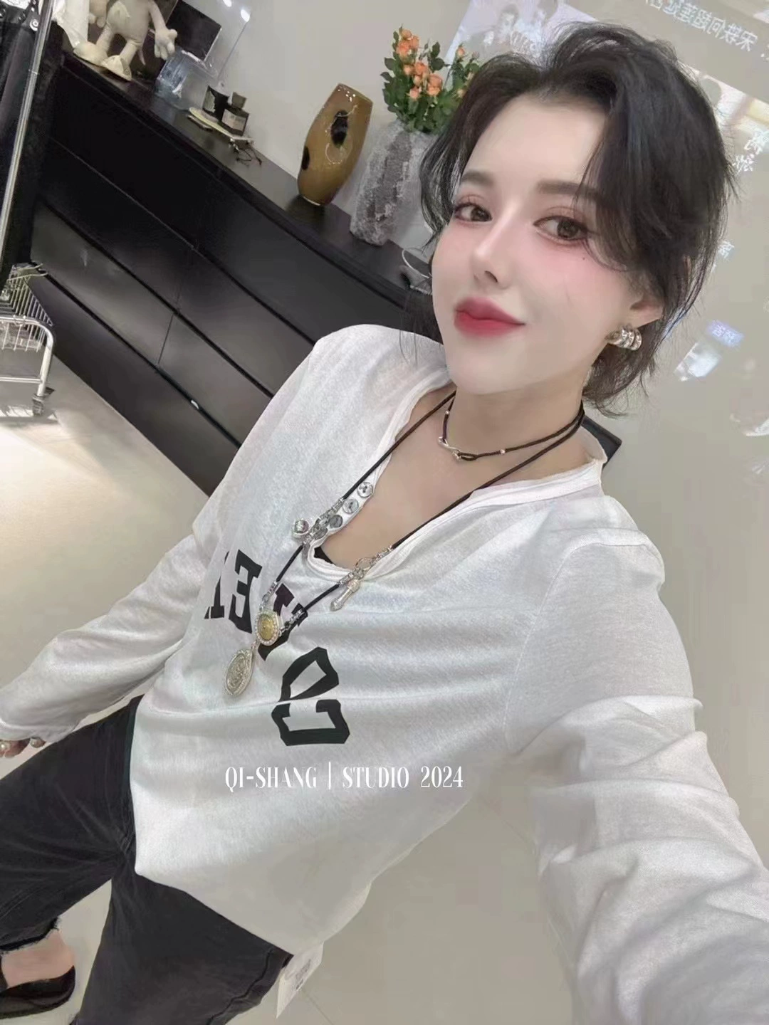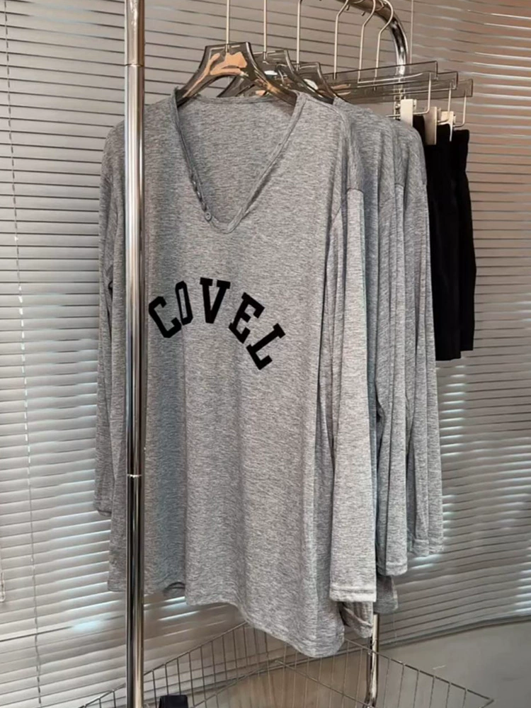 | nameOriginal | Retro V-neck letter spring and summer loose casual thin T-shirt |