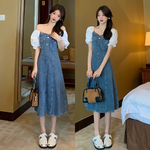 | nameOriginal | Retro V-neck summer fat mm A-line denim dress |