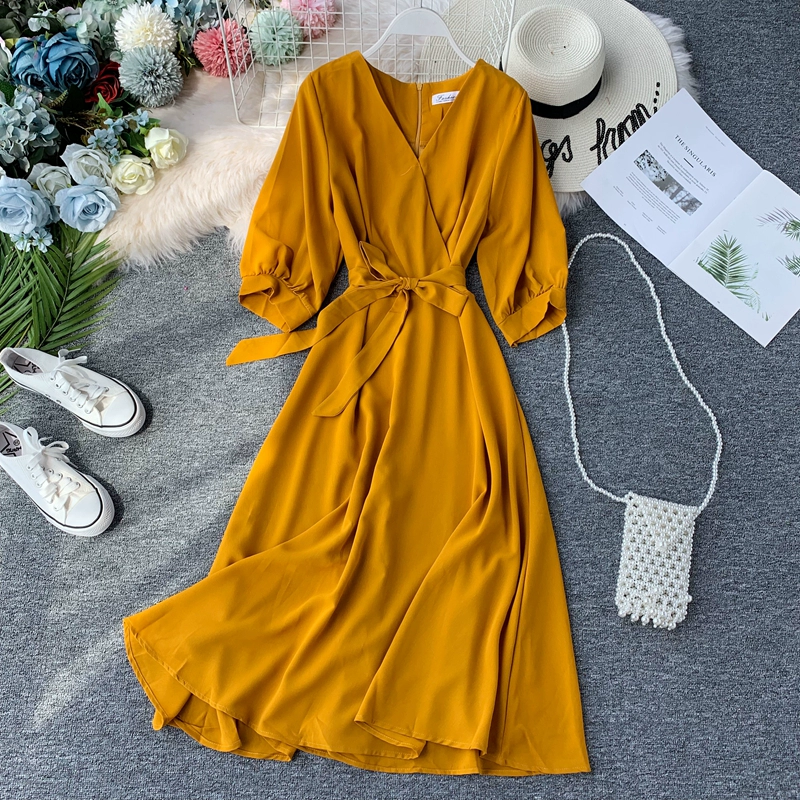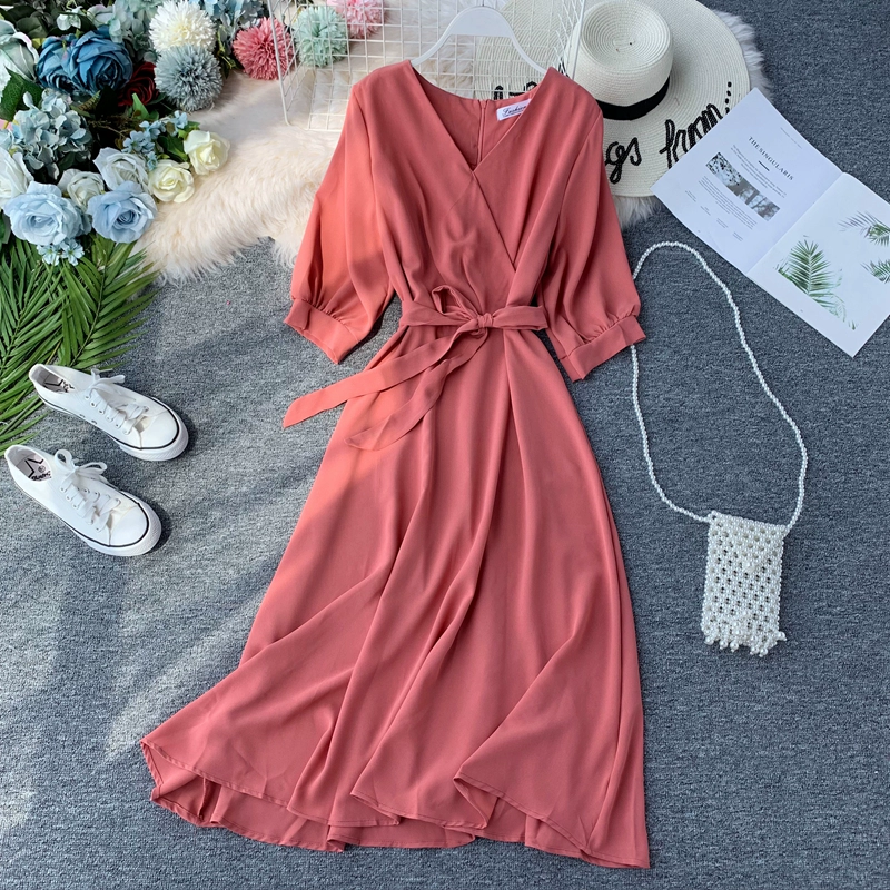 | nameOriginal | Retro V-neck waist slimming burgundy dress |