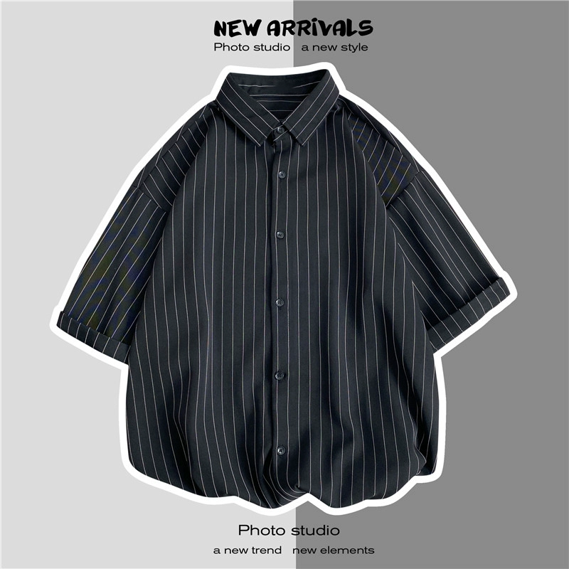 | nameOriginal | Retro vertical striped ins Hong Kong style half-sleeved lapel shirt |