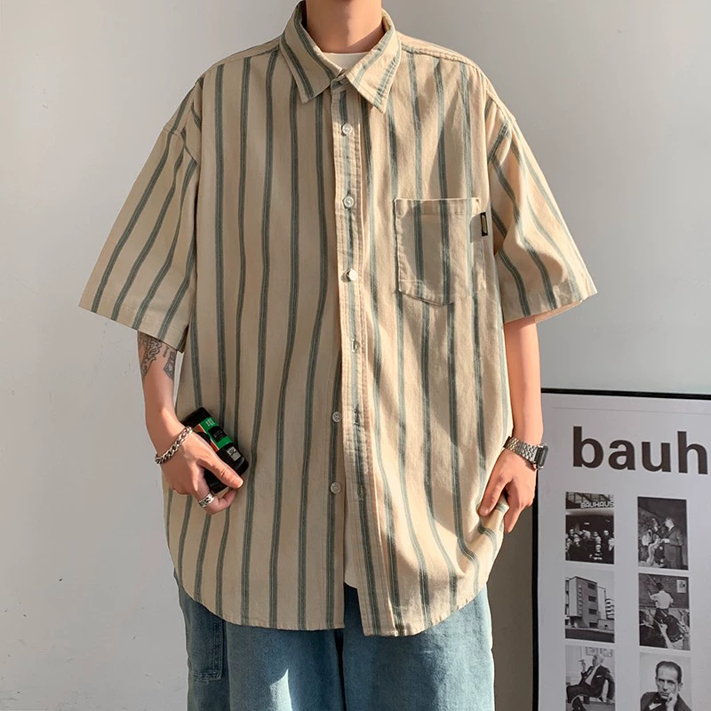 | nameOriginal | Retro vertical striped loose short-sleeved shirt for men and women 2024 summer ins trendy casual Japanese style drape shirt bf |
