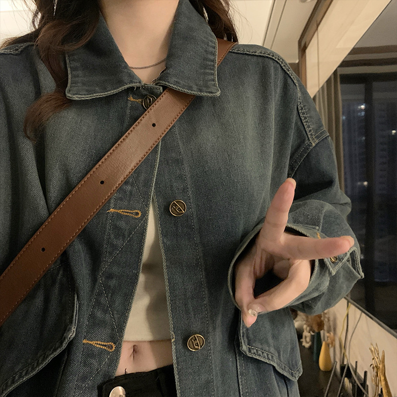 | nameOriginal | Retro washed polo collar Denim coat for women early spring and autumn 2024 New Design loose niche jacket top |