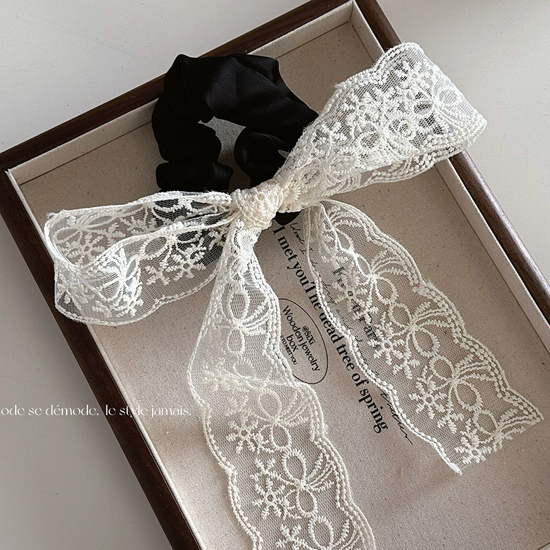 | nameOriginal | Retro white lace floral bow streamer hair tie women's French large intestine detachable long ribbon hair tie |