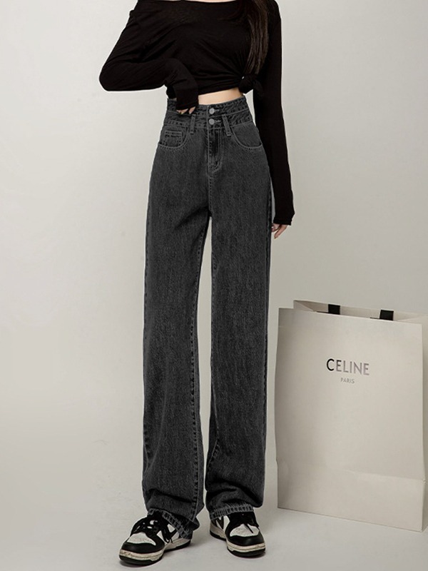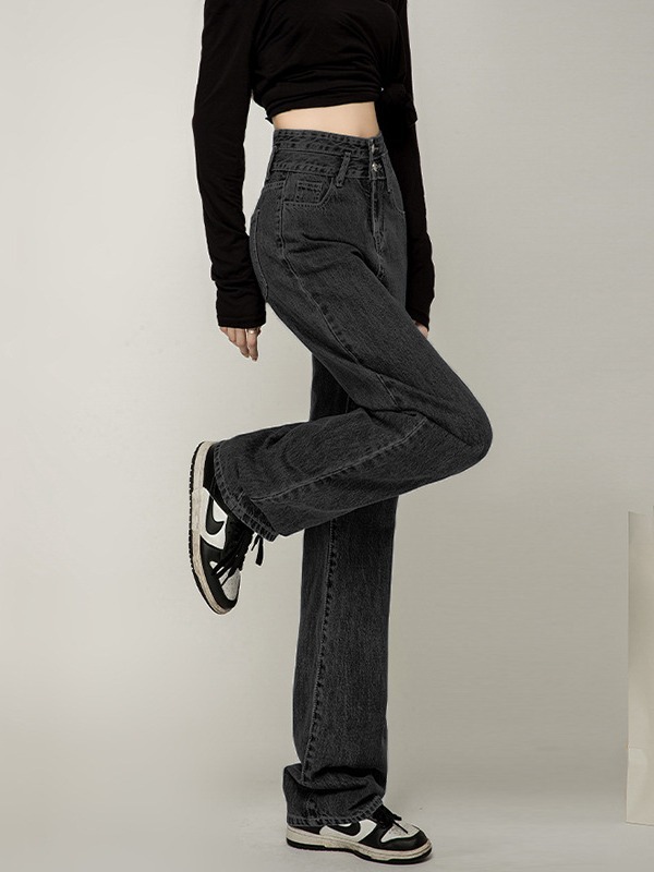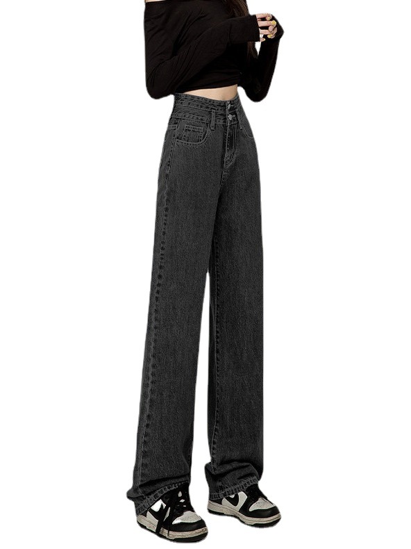 Retro wide-leg jeans straight jeans for women Spring and Autumn New loose high waist small wide-leg pants