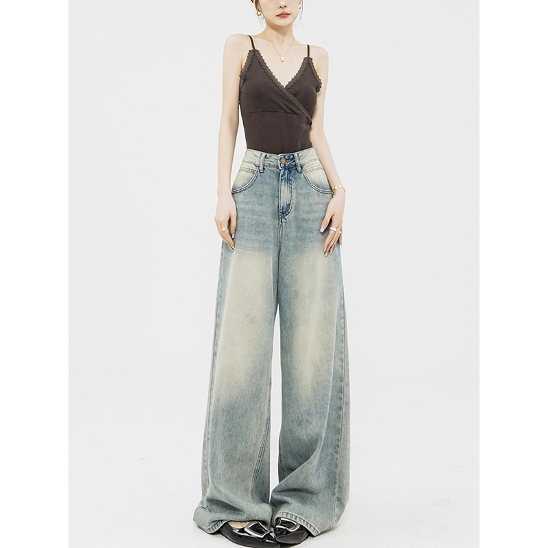 | nameOriginal | Retro Wide Leg Jeans Women's 2024 Summer New Loose Slimming Design Straight Casual Long Pants |