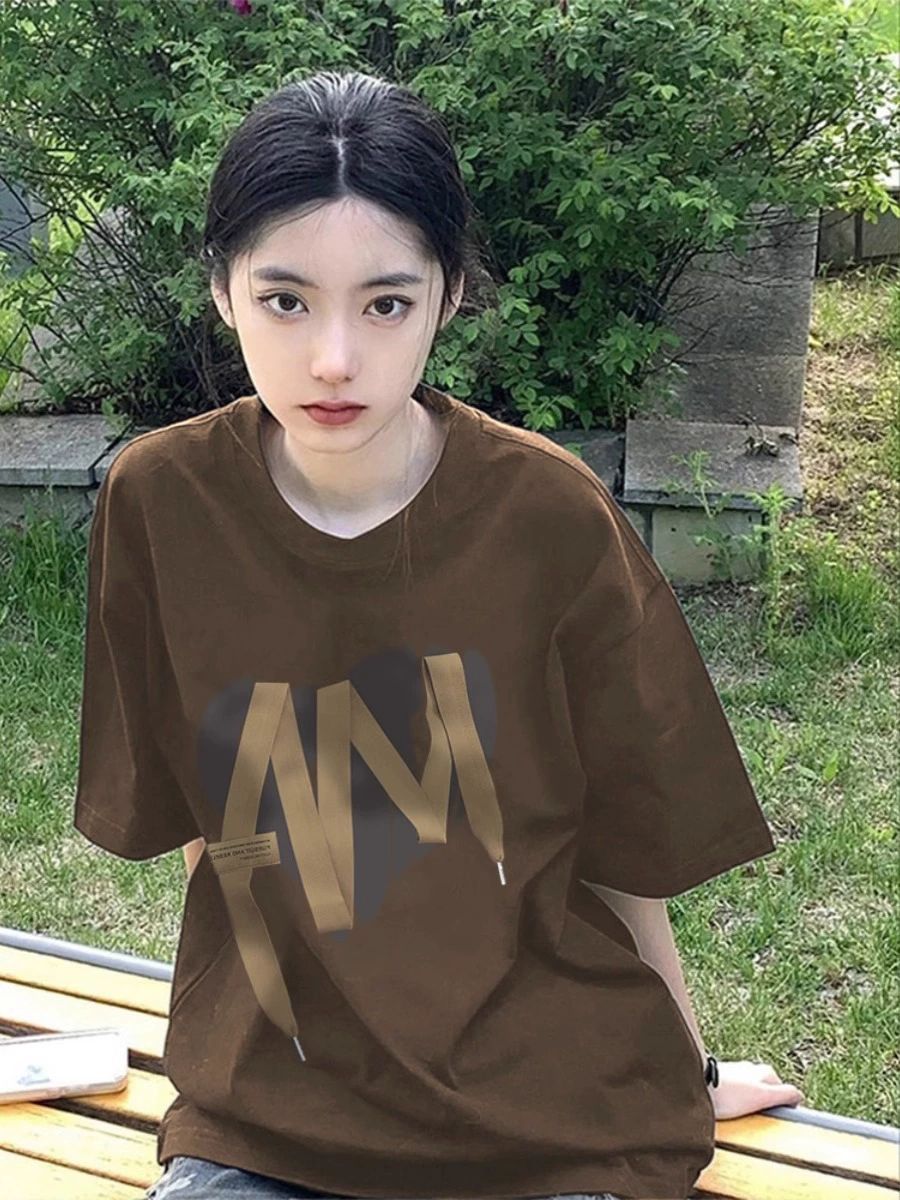 Retro women's summer coffee color ins couple tops short-sleeved t-shirt
