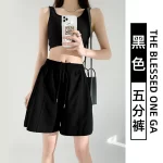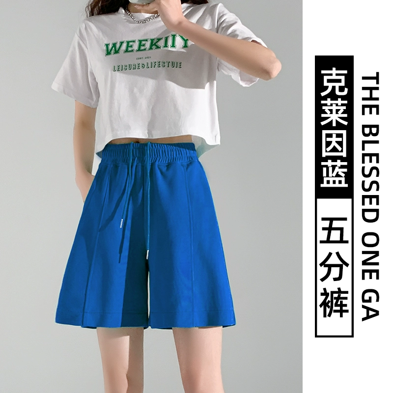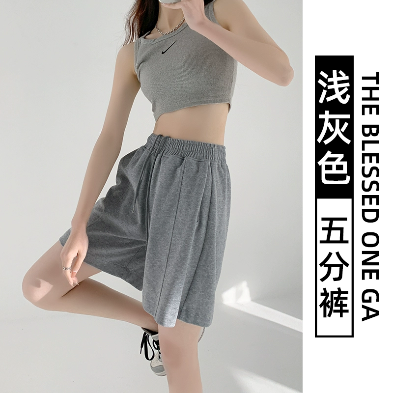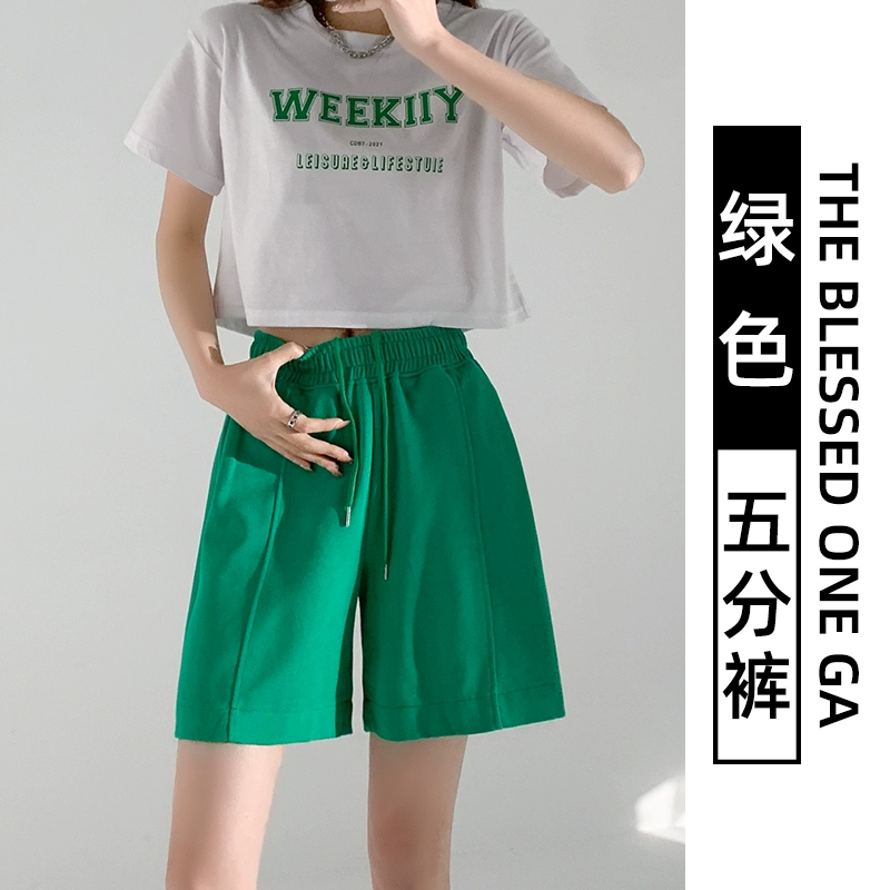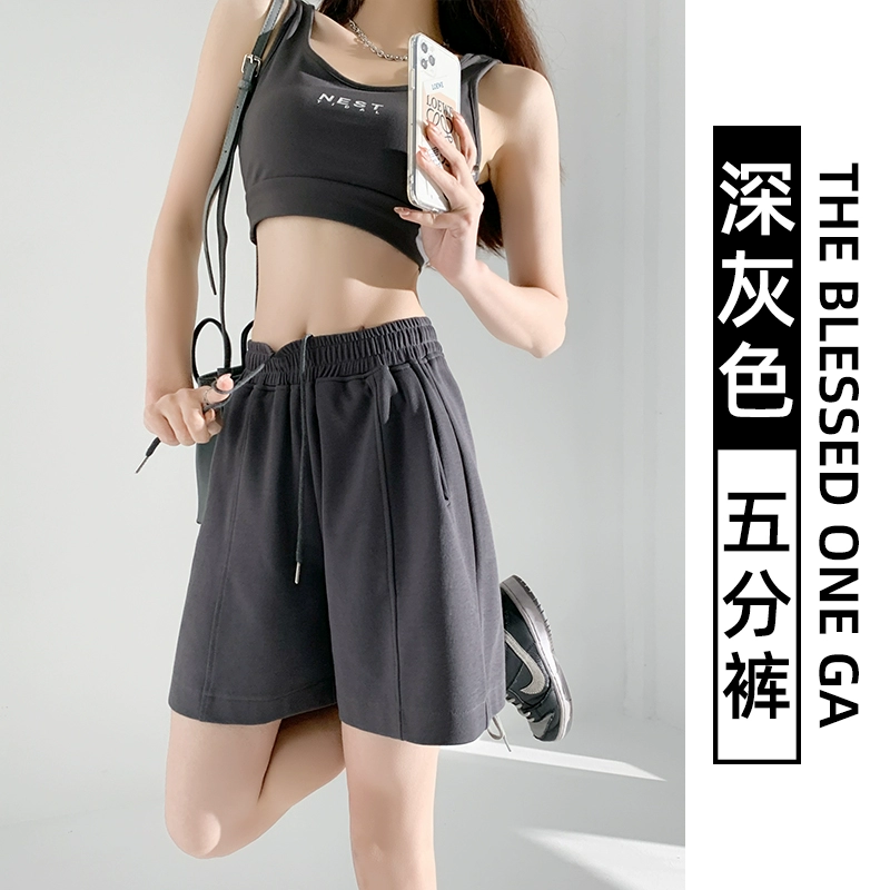Retro women's summer loose high waist drawstring sports shorts