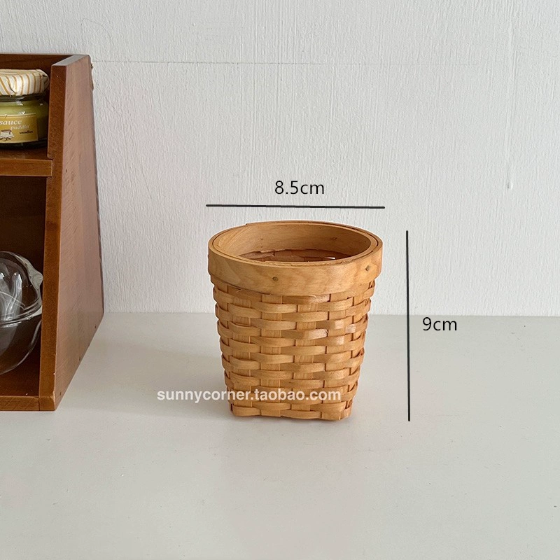 | nameOriginal | Retro woven makeup brush storage bucket wooden pen holder |