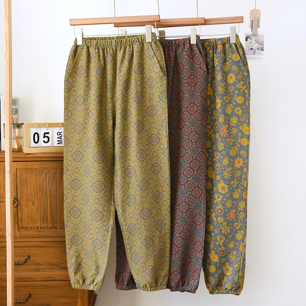 Retro Yarn-dyed Sleeping Pants Cotton Women’s Ethnic Anti-mosquito Pants Wholesale Bundle Pants Can Wear Home Pants