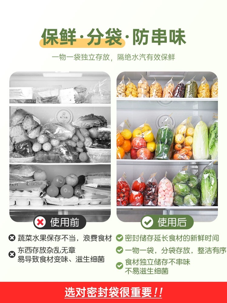 Reusable double-rib sealed fresh-keeping bag for refrigerator storage food self-sealing sub-bag moisture-proof smooth surface