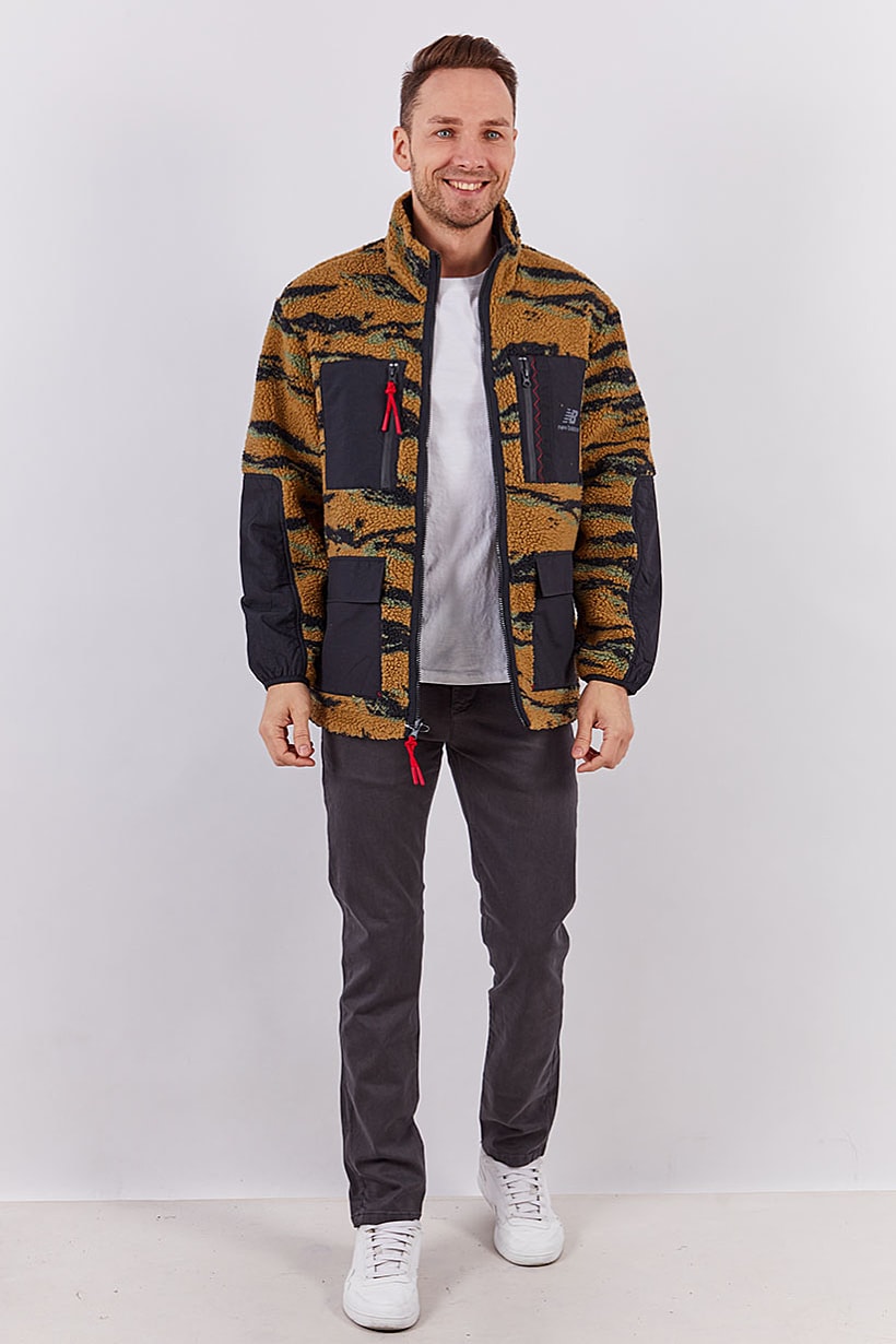 Care : Machine washable, Fit : Relaxed fit, Size shown : US, Sleeve Length : Long Sleeve, Thickness : Light, Type of Neckline & Collar : Mock neckline, Type of Sport : Outdoors, Disclaimer : Product color may slightly vary due to photographic lighting sources or your monitor settings., Fabrics : 100% Polyester, Occasion : Sport, Pattern & Print : Camouflage, Sportswear Type : Jackets, Types of Closures : Zipper closure, Color Family : Olive,