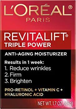 | nameOriginal | L’Oreal Paris Skincare Revitalift Triple Power Anti-Aging Face Moisturizer with Pro Retinol, Hyaluronic Acid & Vitamin C to reduce wrinkles, firm and brighten skin, 1.7 Oz |