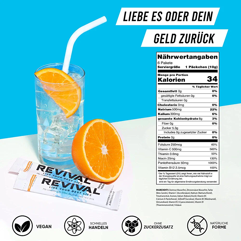 | nameOriginal | Revival Rapid Rehydration Electrolytes Powder – High Strength Vitamin C, B1, B3, B5, B12 Supplement Sachet Drink, Effervescent Electrolyte Hydration (Watermelon, 6 Count (pack of 1)) |