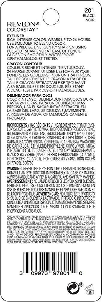 | nameOriginal | Pencil Eyeliner by Revlon, ColorStay Eye Makeup with Built-in Sharpener, Waterproof, Smudgeproof, Longwearing with Ultra-Fine Tip, 201 Black, 0.01 Oz |