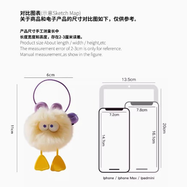 | nameOriginal | Rex Rabbit Fur Cute Coal Ball Doll Keychain Women's High-end Cute Cartoon Bag Pendant School Bag Hanging |