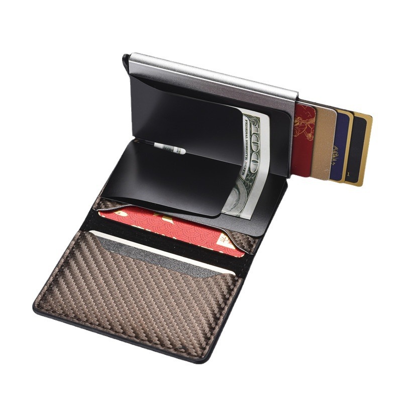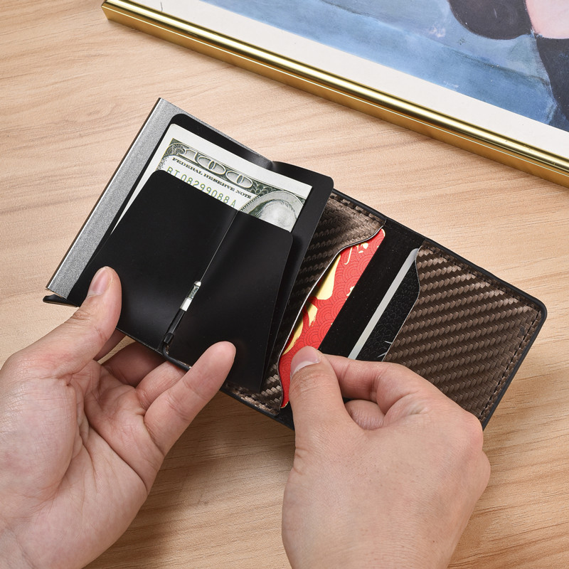 | nameOriginal | RFID anti-theft brush automatic pop-up card holder ultra-thin credit card metal card holder men's multi-card wallet carbon fiber |