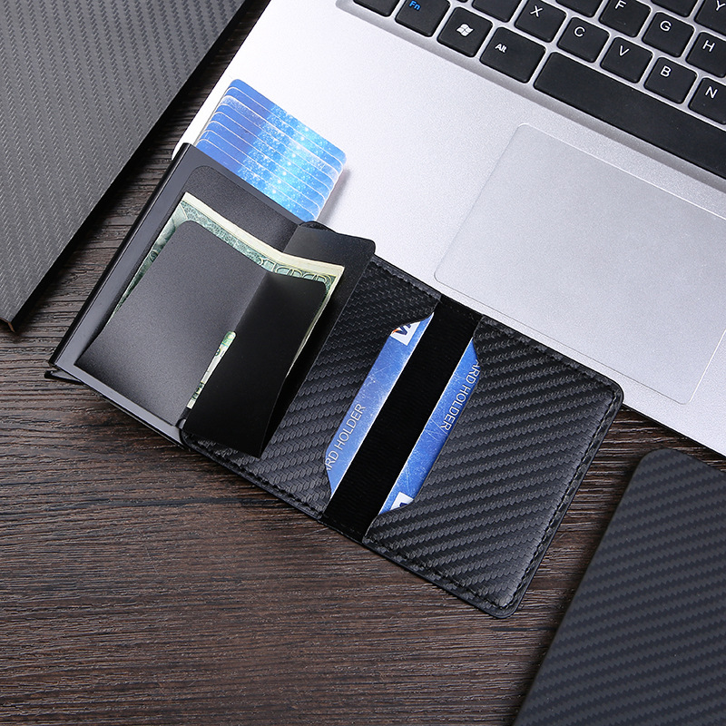 | nameOriginal | RFID anti-theft brush automatic pop-up card holder ultra-thin credit card metal card holder men's multi-card wallet carbon fiber |