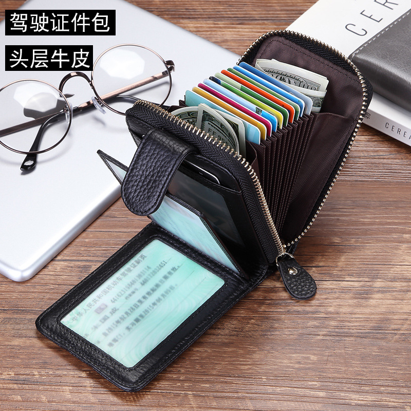 | nameOriginal | RFID anti-theft brush layer cowhide large capacity zipper type ID set multi-functional driver's license organ card bag wholesale |