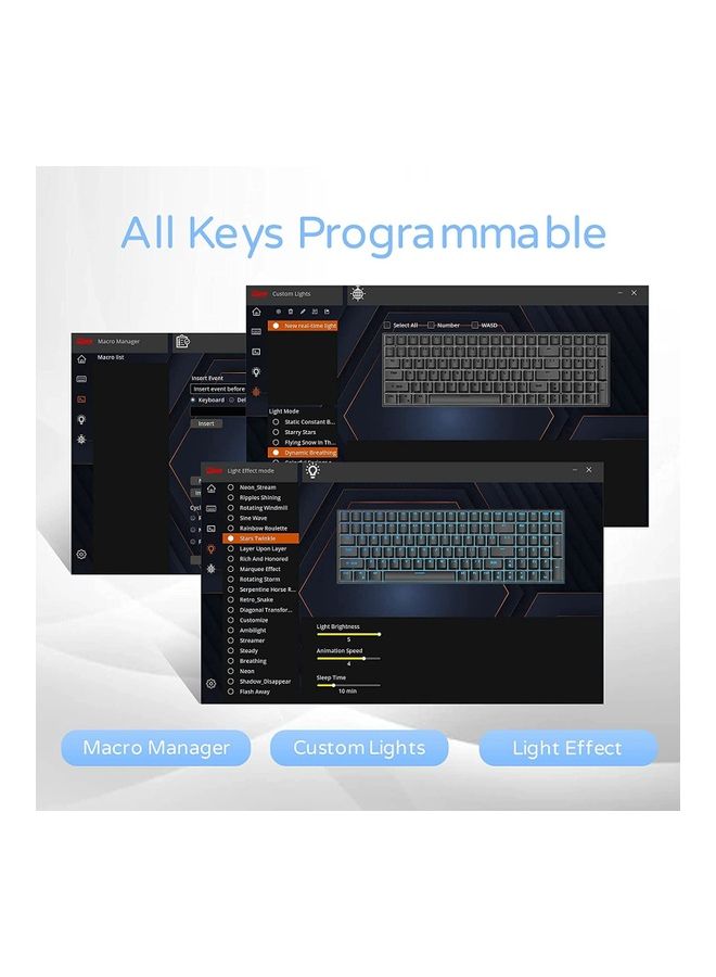 | nameOriginal | RK100 Three Modes, Bluetooth/2.4G/Wired, RGB Mechanical Gaming Keyboard, 100 Keys Connectable Hot Swappable |