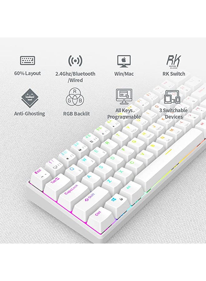 | nameOriginal | RK61 Dual – Mode Bluetooth/Wired Hot Swapable RGB Mechanical Gaming Keyboard Brown Switch |