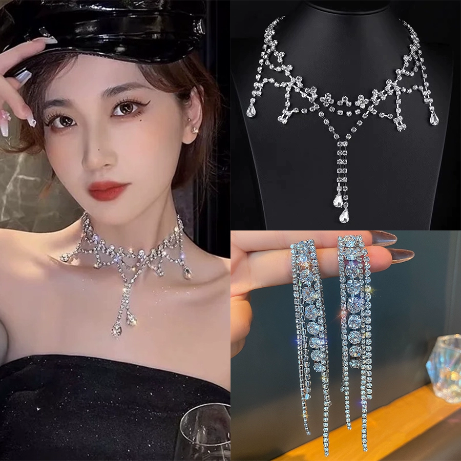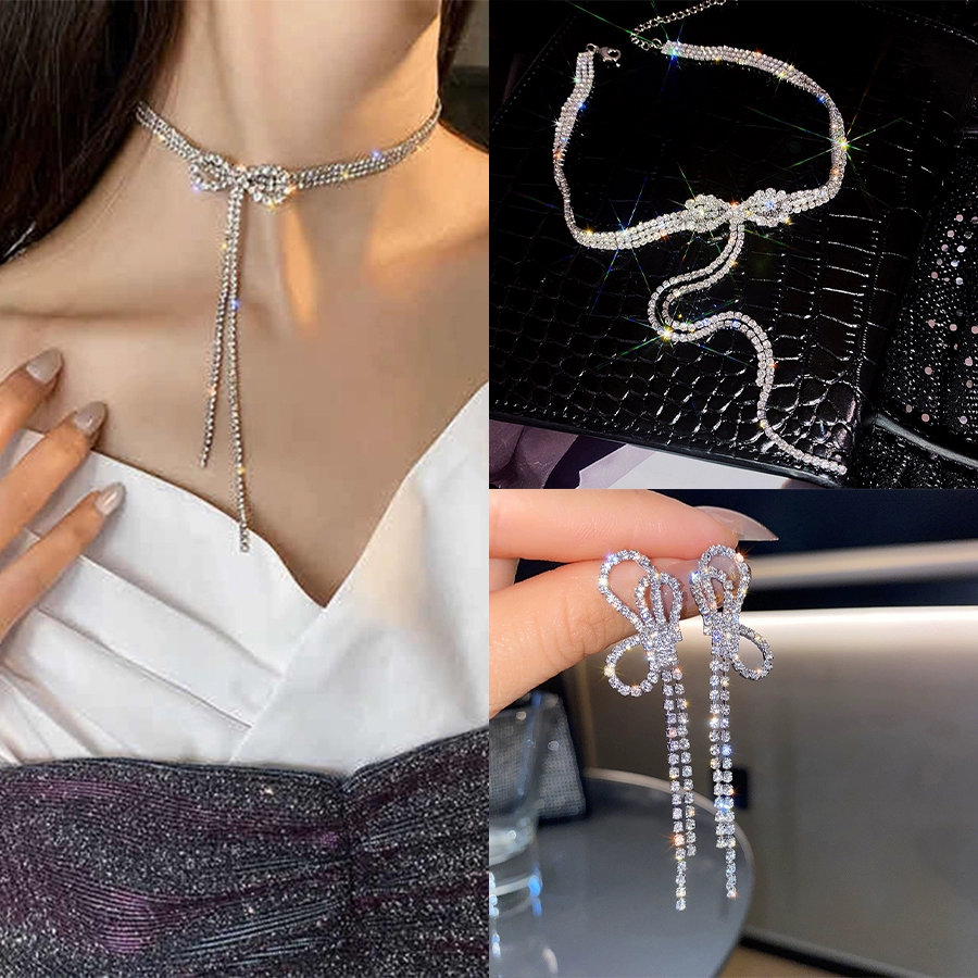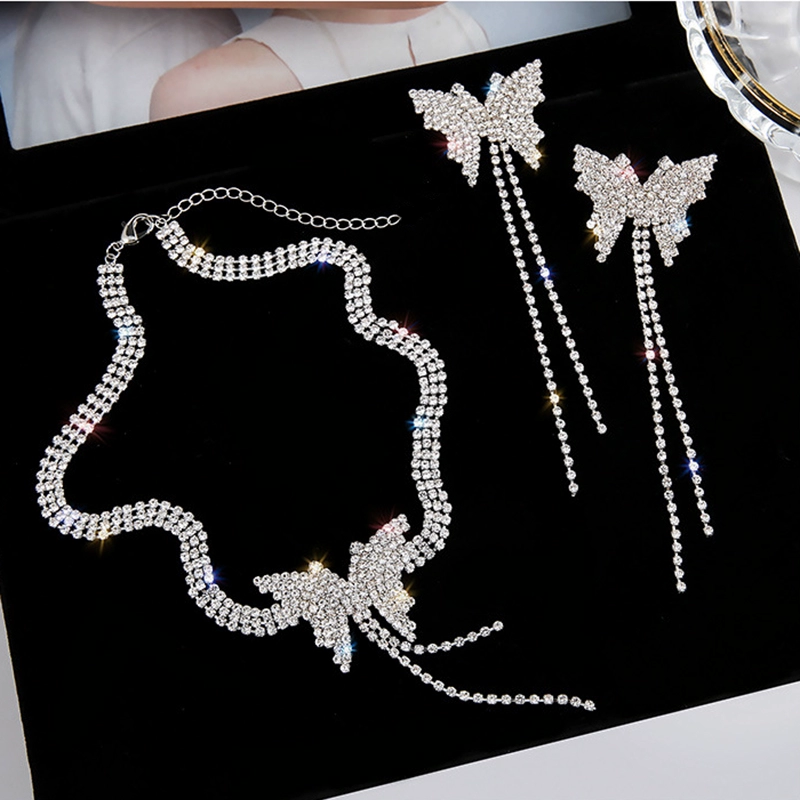 | nameOriginal | Rhinestone Butterfly Tassel Pendant Necklace and Earrings Set Female Internet Celebrity Sweet and Versatile Bridal Necklace Accessories |