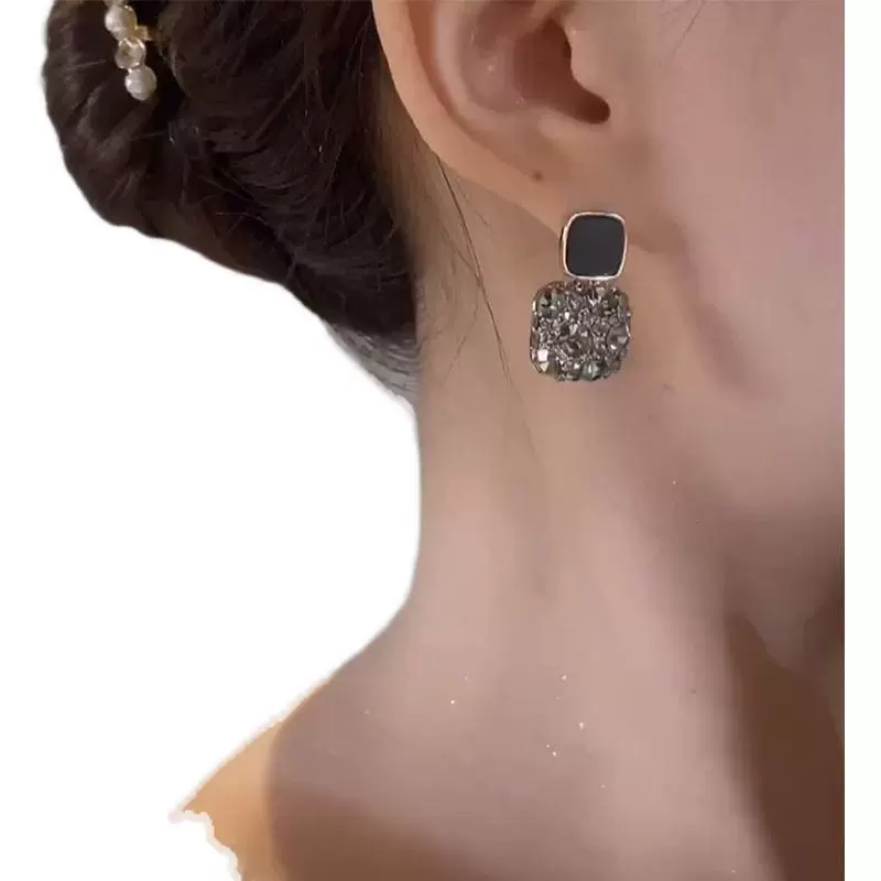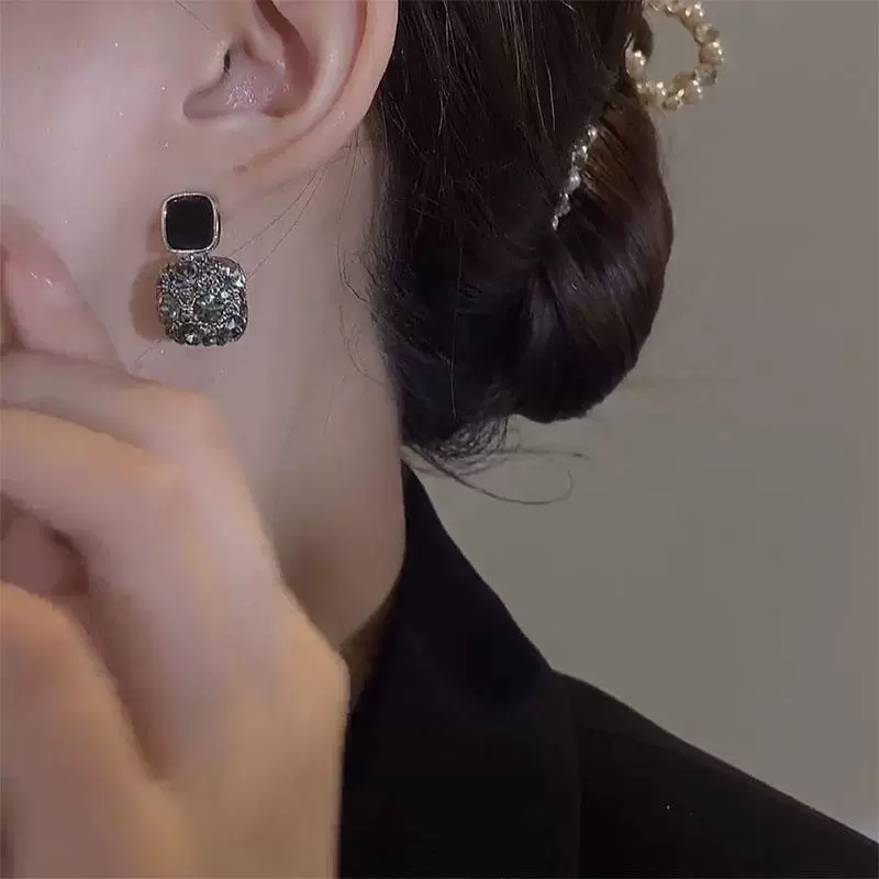 | nameOriginal | Rhinestone earrings 2024 new niche high-end earrings light luxury Internet celebrity earrings Korean temperament ear clip black earrings |