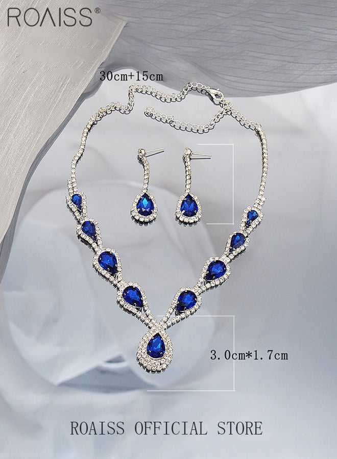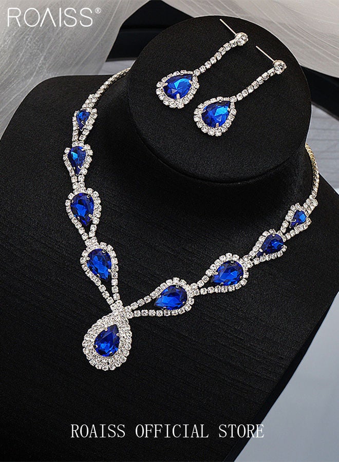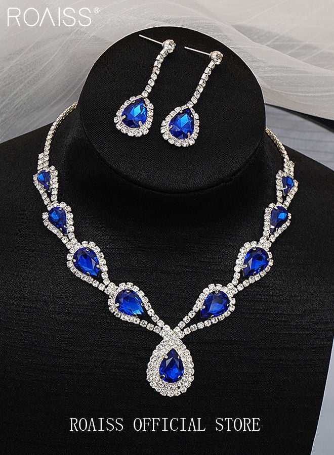 3 Pcs Rhinestone Necklace Earrings Set Drop-Shaped Pendant V-Neck Chain Ear Dangle Bridal Evening Dress Accessories for Women