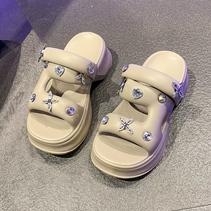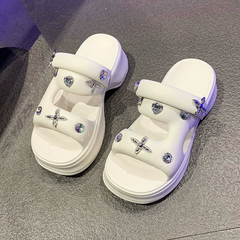 | nameOriginal | Rhinestone seaside non-slip two-wear thick-soled slippers |