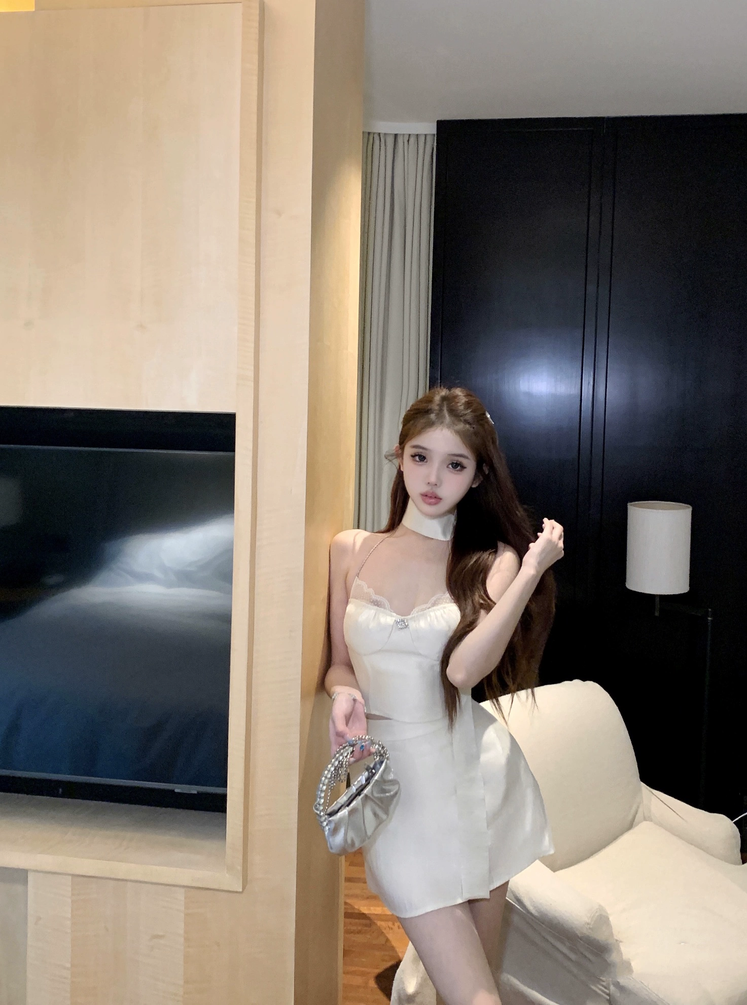 | nameOriginal | Rhinestone short women's summer hip two-piece lace set |