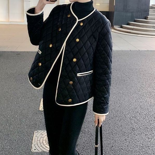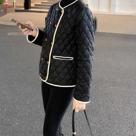| nameOriginal | Rhombic Chanel style contrast color thin cotton coat women's winter warm casual temperament small short top |