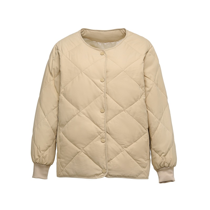 | nameOriginal | Rhombic collarless down jacket women's lightweight short 2023 new small loose round neck white duck down liner coat |