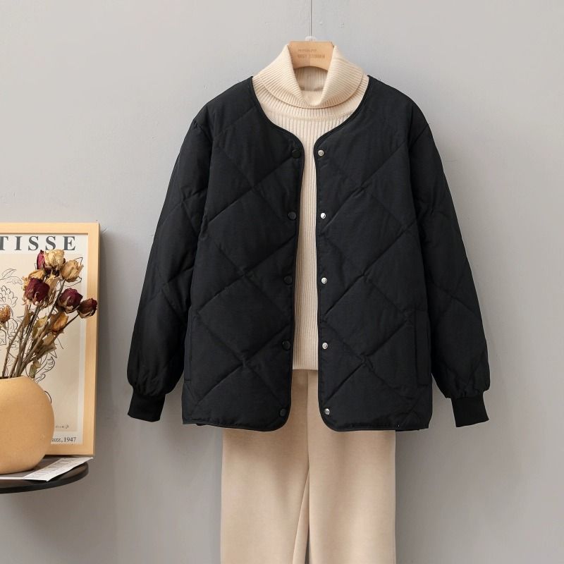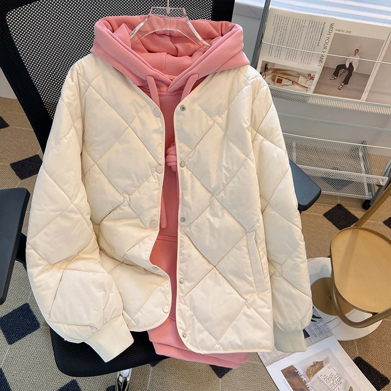 Rhombic down cotton-padded jacket women’s short 2023 Winter new small student cotton-padded jacket lightweight cotton-padded jacket
