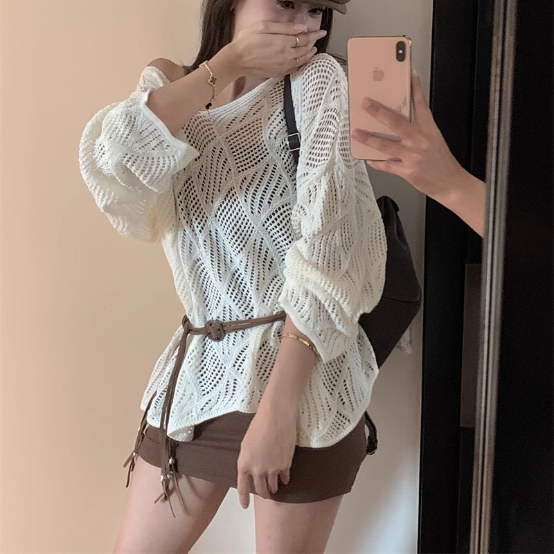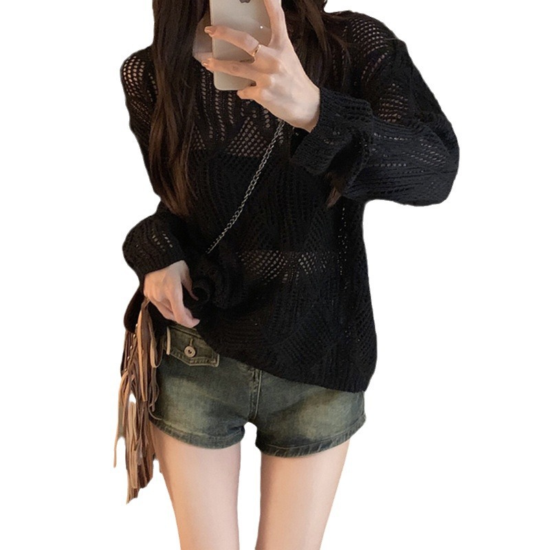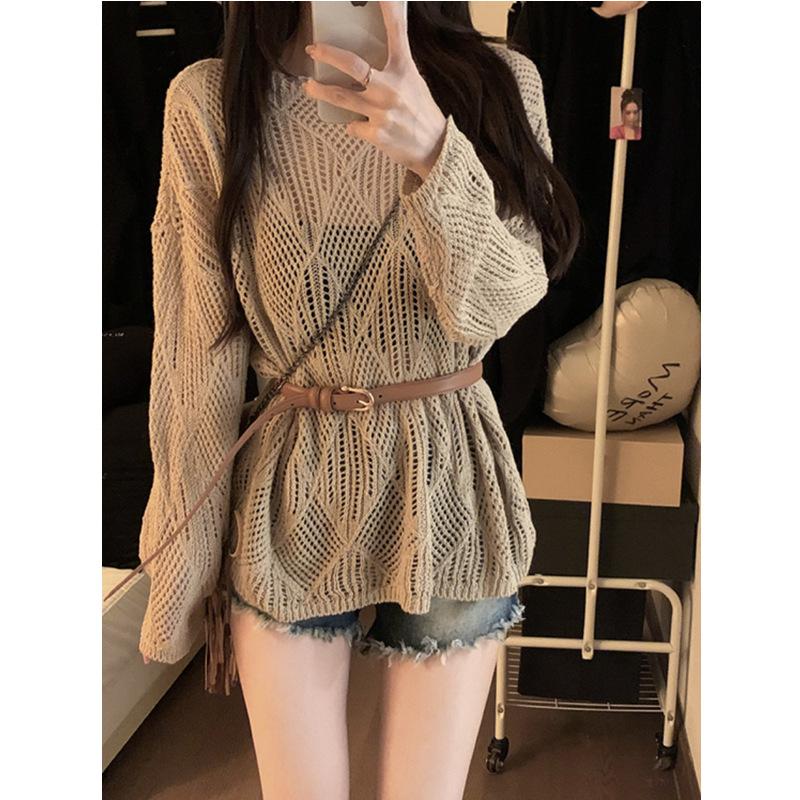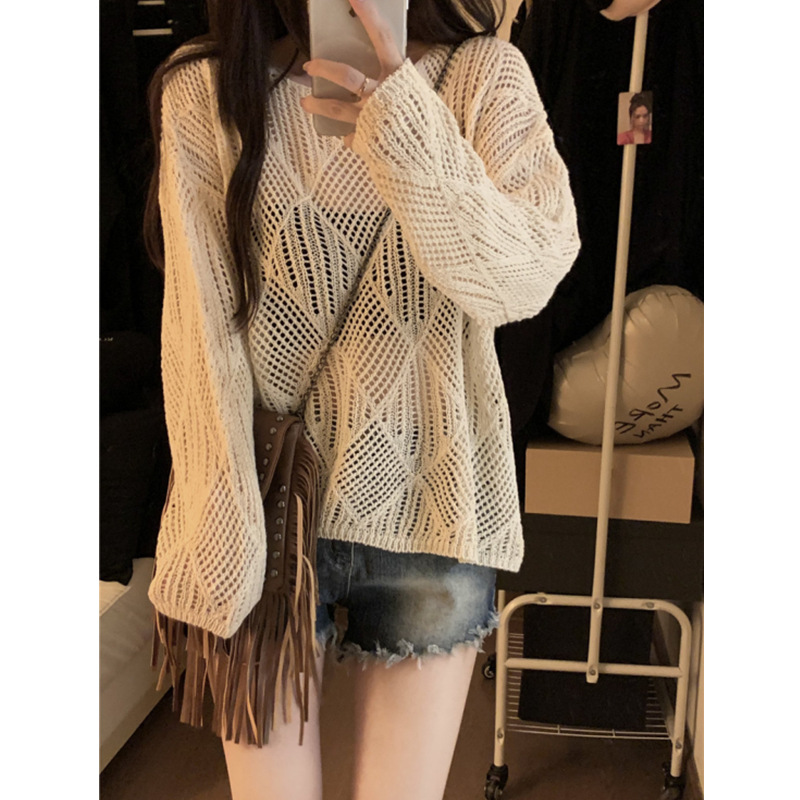 | nameOriginal | Rhombic Hollow Thin Wool Knitted Sweater Early Autumn 2024 New Retro Loose Design Chic Outer Top for Women |