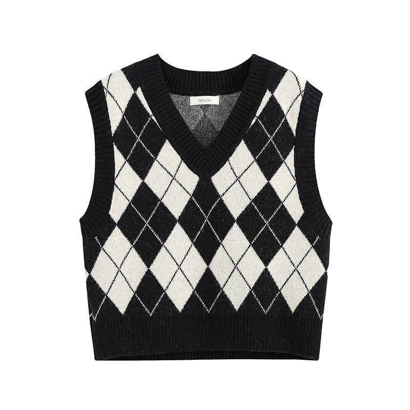 | nameOriginal | Rhombic Plaid Knitted Vest Vest Women's Spring 2023 New French Style Retro V-neck Lazy Style Vest for Hair |