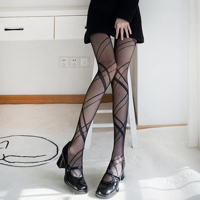 | nameOriginal | Rhomboid Line Strap Slimming Black Silk Stockings Cross Lace-up Bow Leg Socks Base Stockings Sexy White Silk |