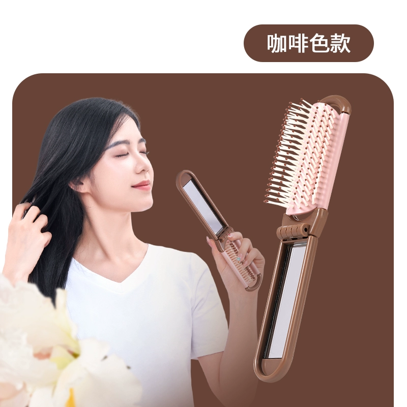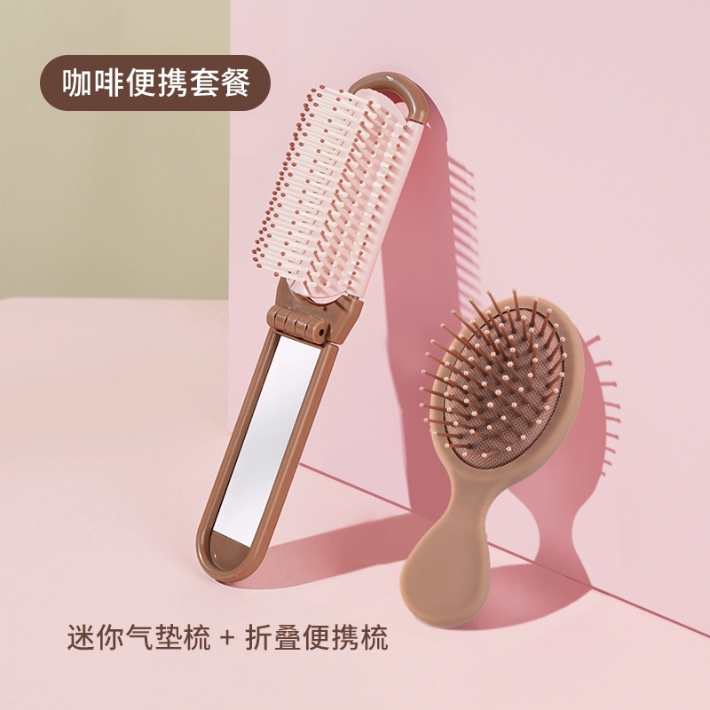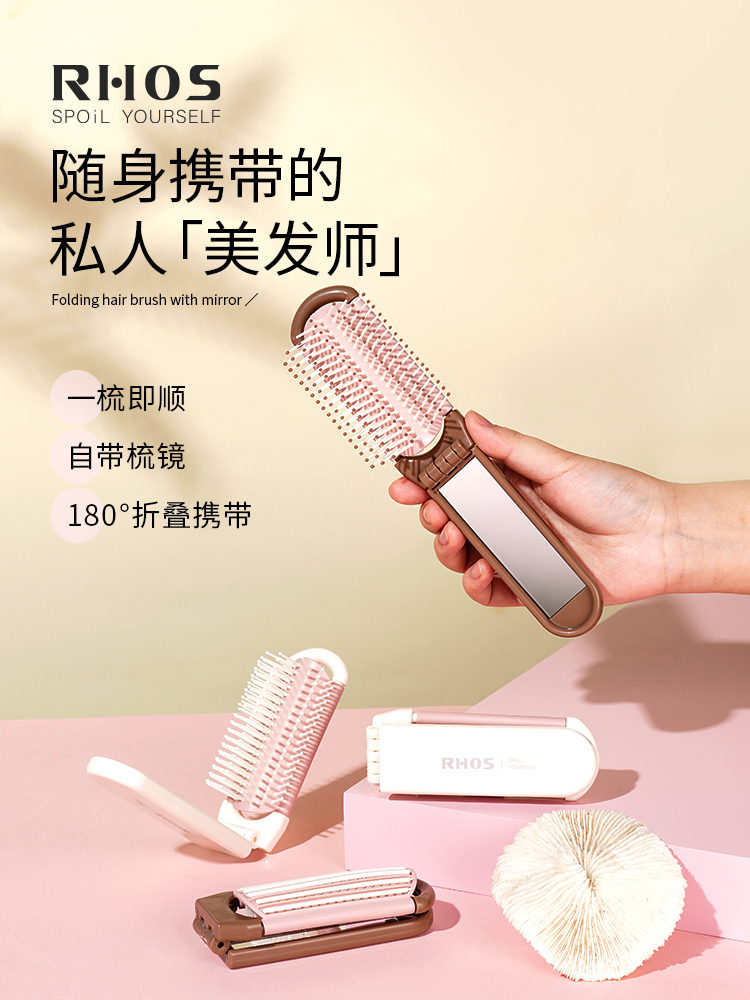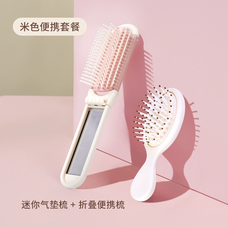 RHOS folding pocket small comb with portable female bangs mini mirror all -in -one mini airbag cushion comb