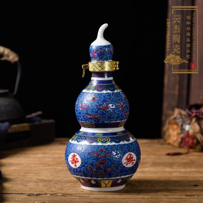 RI0T gourd wine bottle 5kg blue and white porcelain ceramic 1/2/10kg empty wine set sealed white wine jar wine jar