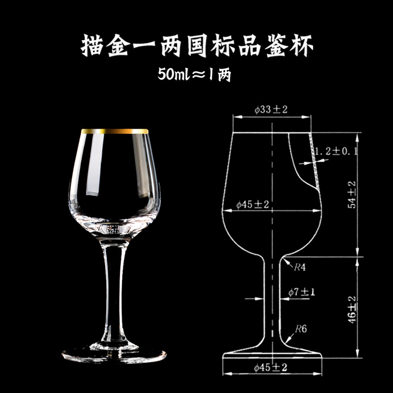 | nameOriginal | RI0T wine tasting special national standard cup crystal glass white wine glass tasting cup 50ml gold painting ios sauce wine smell |