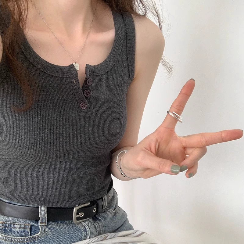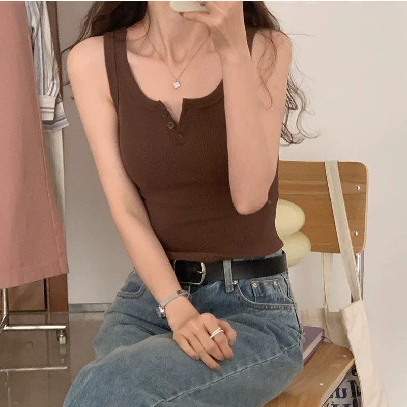 | nameOriginal | Ribbed cotton button blouse American style vest suspenders |